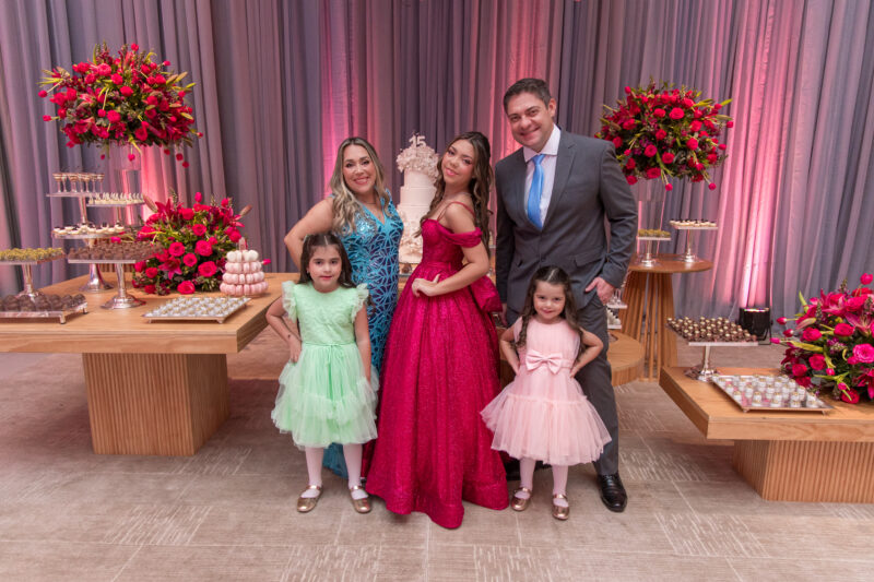 A doce e sonhadora Naty, ao lado de seus pais, escolheu o espaço Dreamland para viver um dos momentos mais marcantes de sua vida: sua inesquecível Festa de 15 Anos! Com um olhar sensível para os detalhes, Naty fez questão de que tudo refletisse sua essência delicada e romântica — e para isso, pediu que a decoração explorasse diferentes tons de rosa, sua cor do coração.