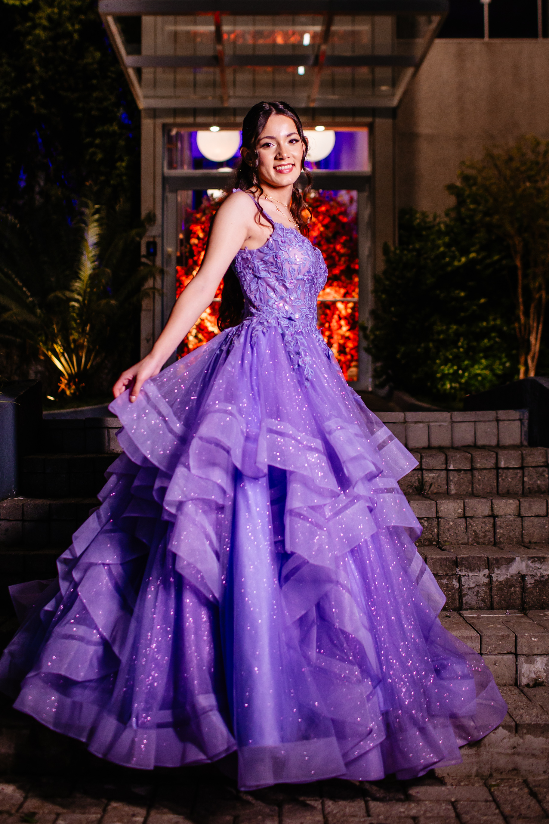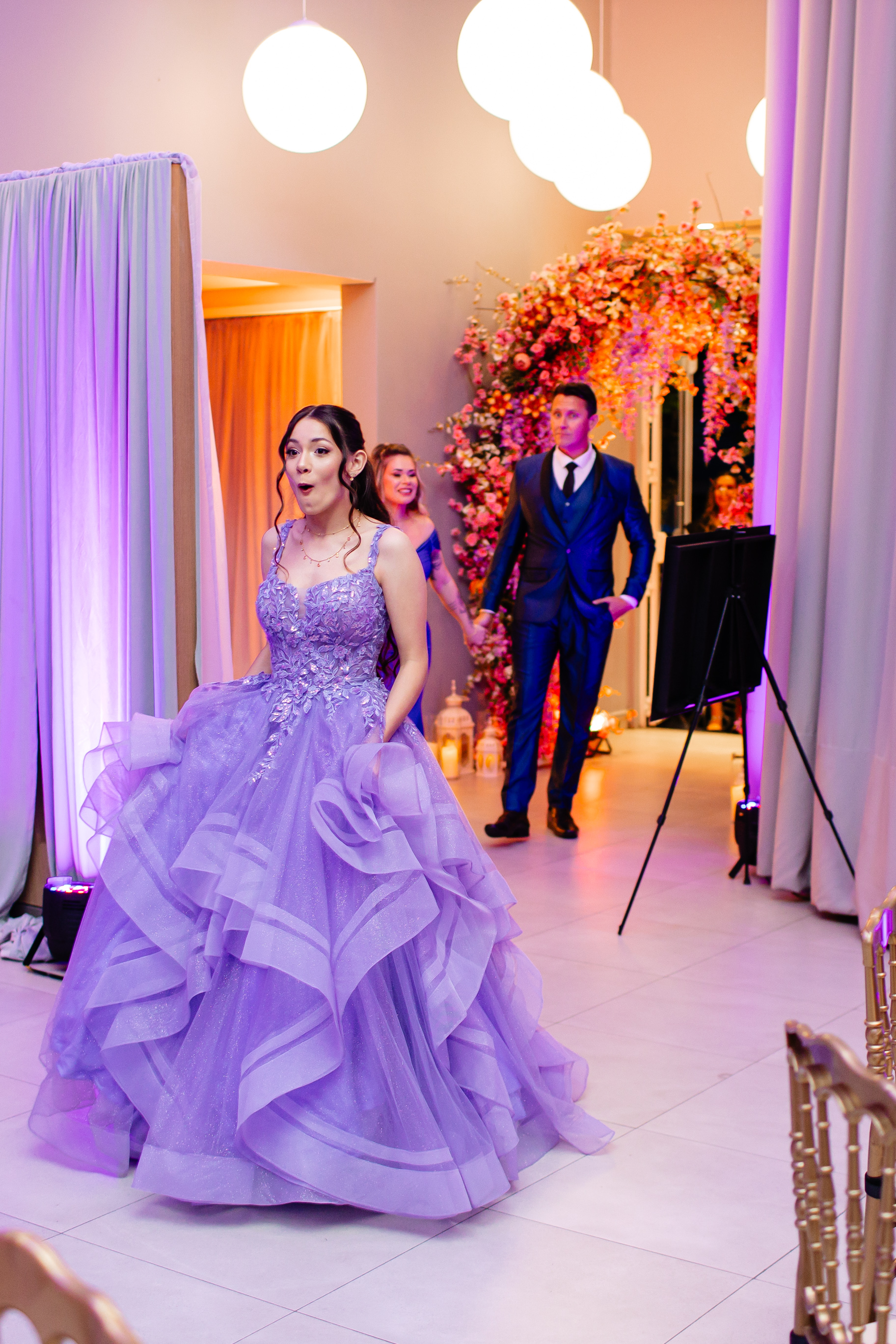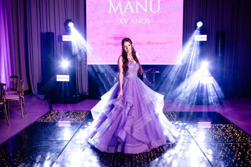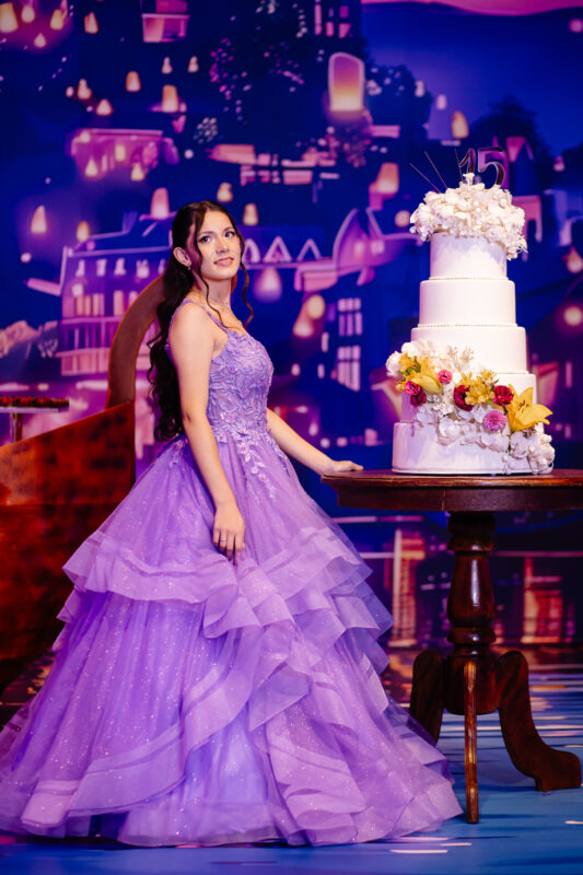 A debutante brilhou em um vestido lilás deslumbrante, e cada detalhe da decoração reforçou a proposta do evento: sofisticação, personalidade e emoção em perfeita harmonia.