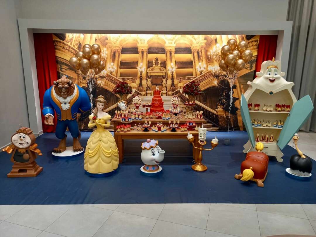 Decoração Personalizada: Equipe de Party Designers e Event Planners Dreamland. Tema: A Bela e a Fera. Varias montagens.