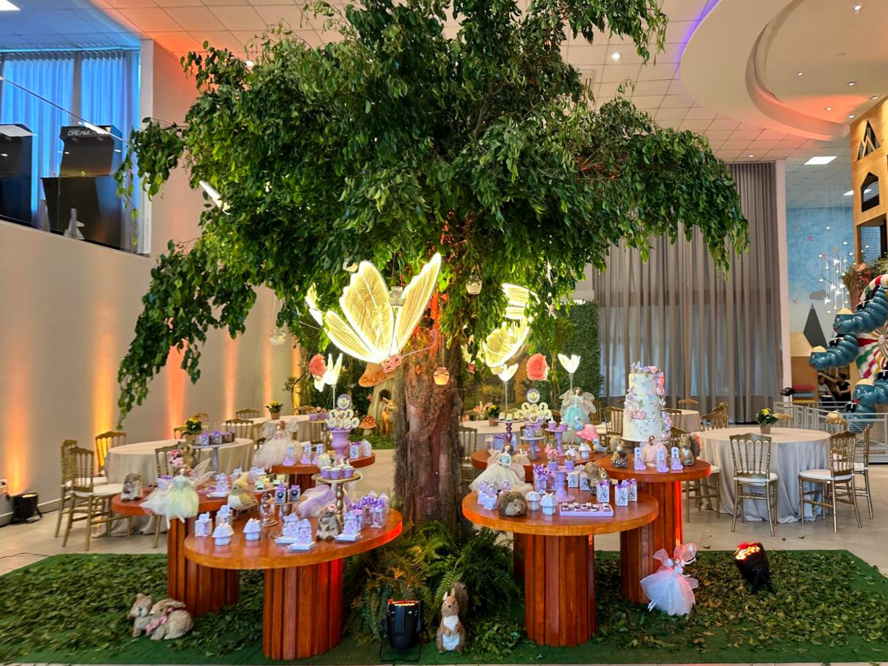 Decoração Personalizada: Equipe de Party Designers e Event Planners Dreamland. Tema: Bosque  Encantado em 360°. Varias montagens.