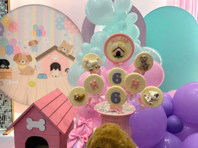 Decoração Personalizada: Equipe de Party Designers e Event Planners Dreamland. Tema: Cachorrinhos. Cachorro. Cão. Cãozinho. Varias montagens.