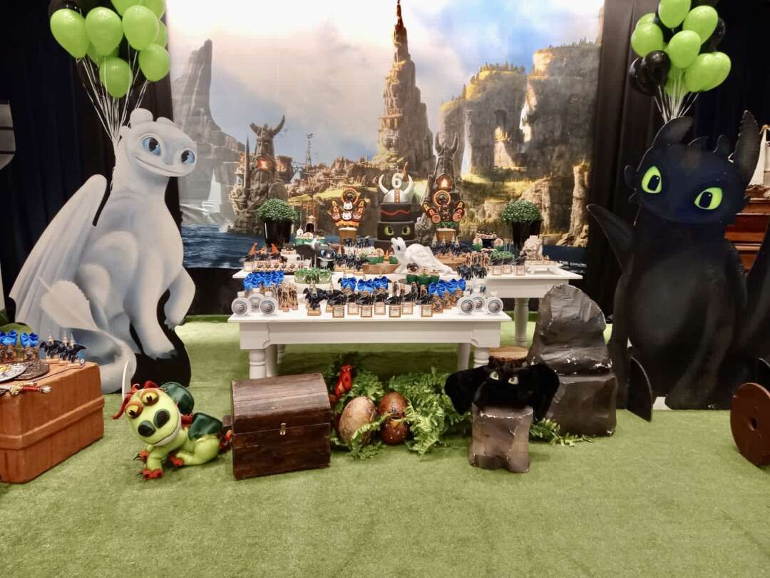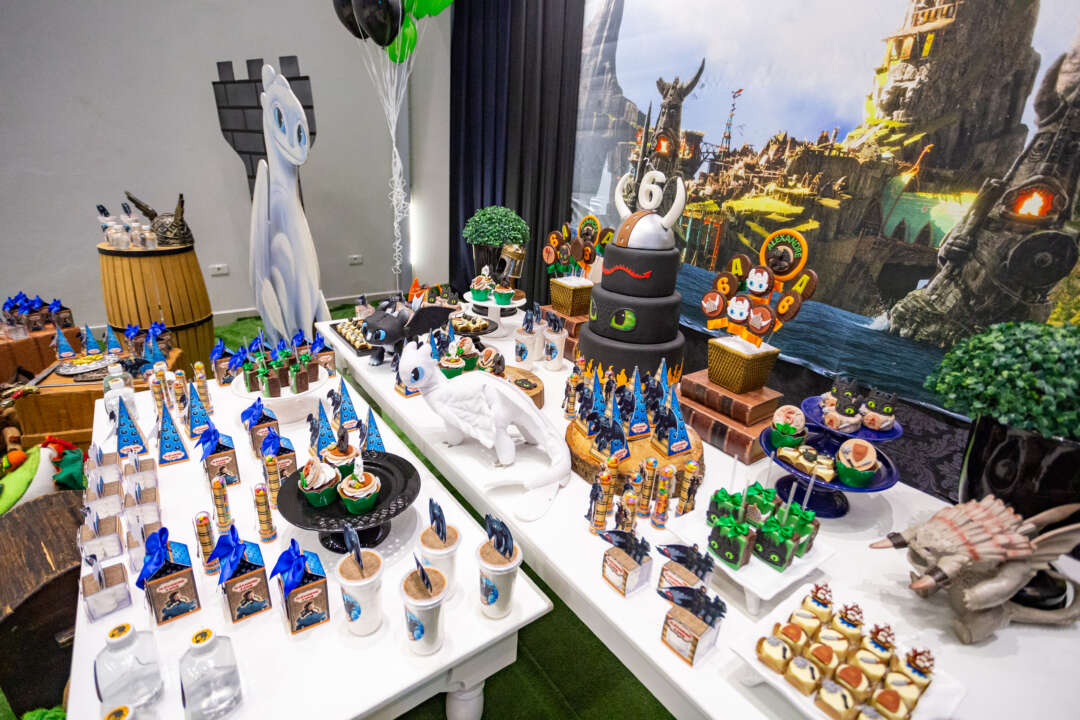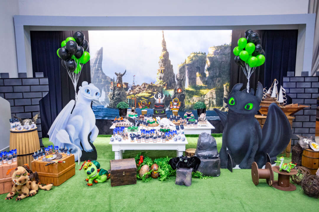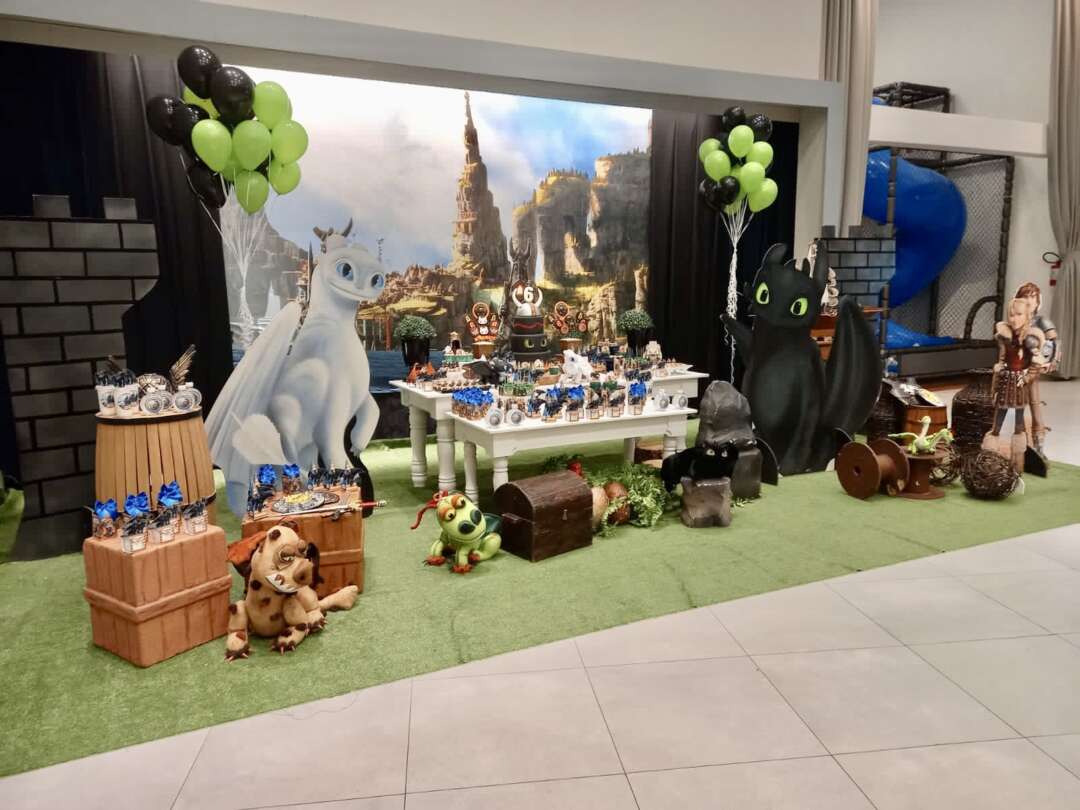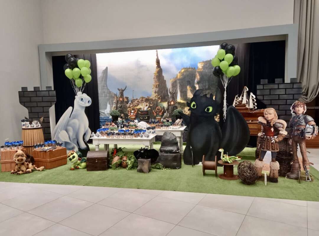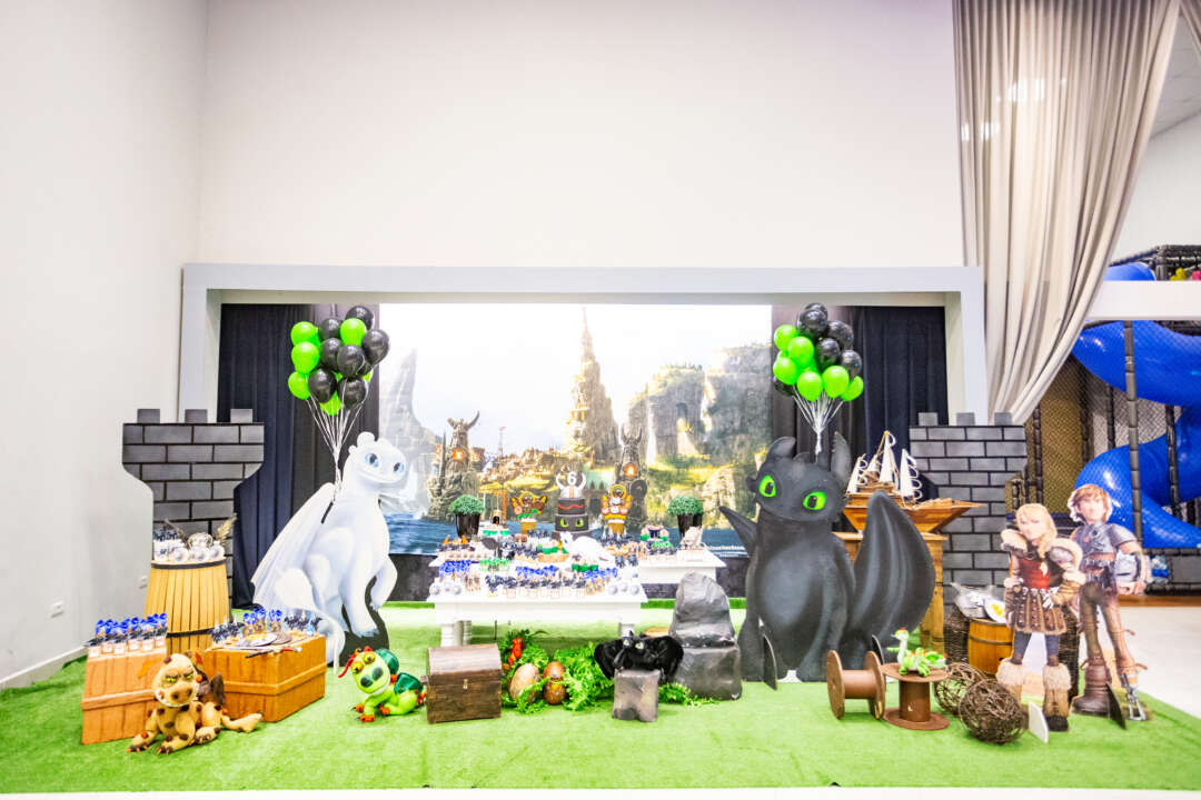 Decoração Personalizada: Equipe de Party Designers e Event Planners Dreamland. Tema: Como Treinar seu Dragão. Varias montagens.