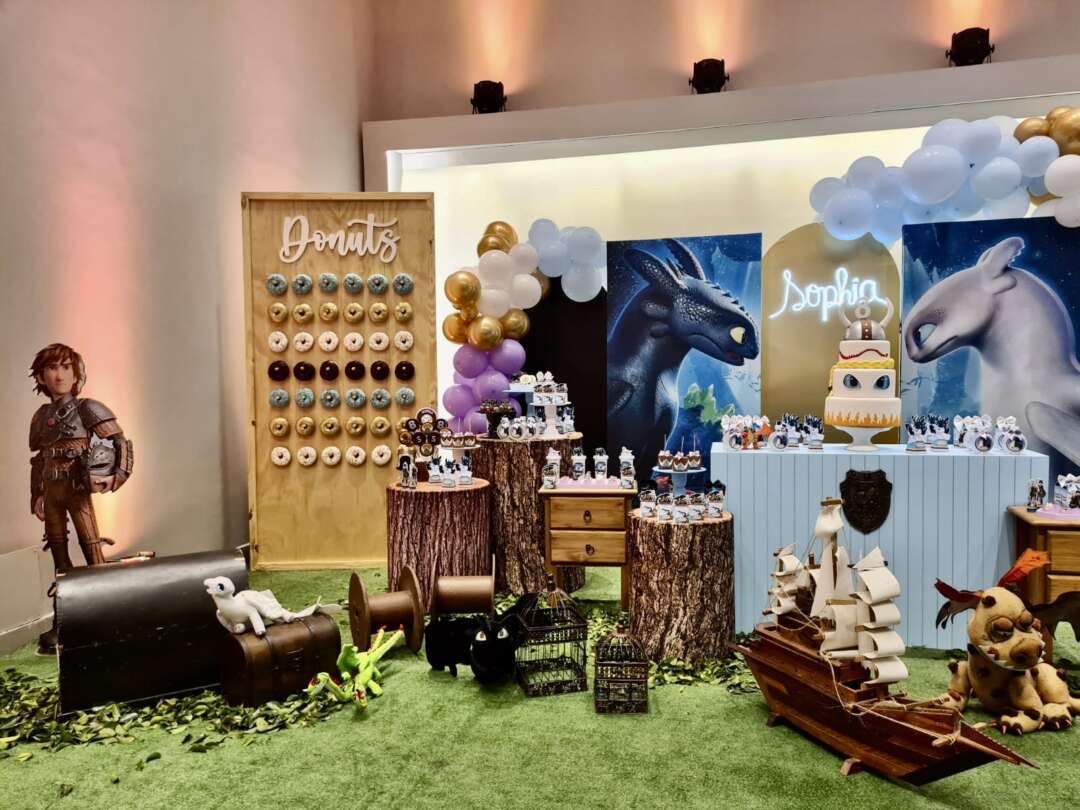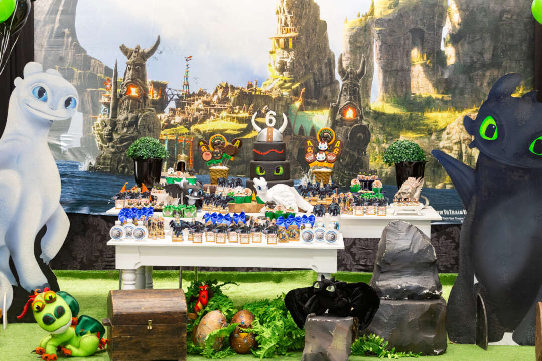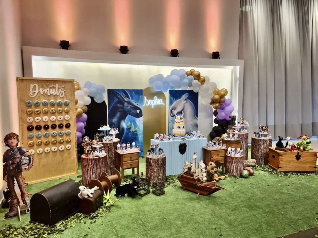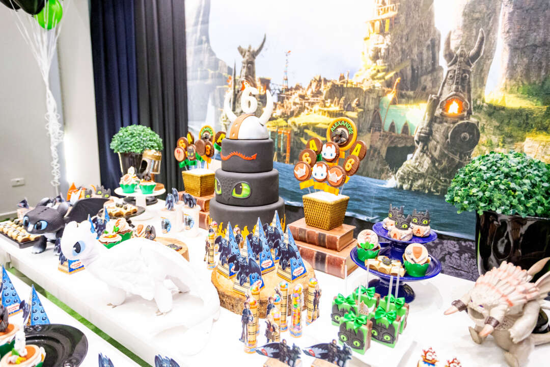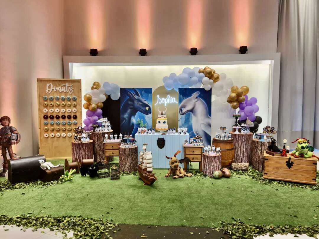 Decoração Personalizada: Equipe de Party Designers e Event Planners Dreamland. Tema: Como Treinar seu Dragão. Varias montagens.
