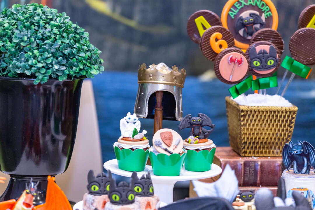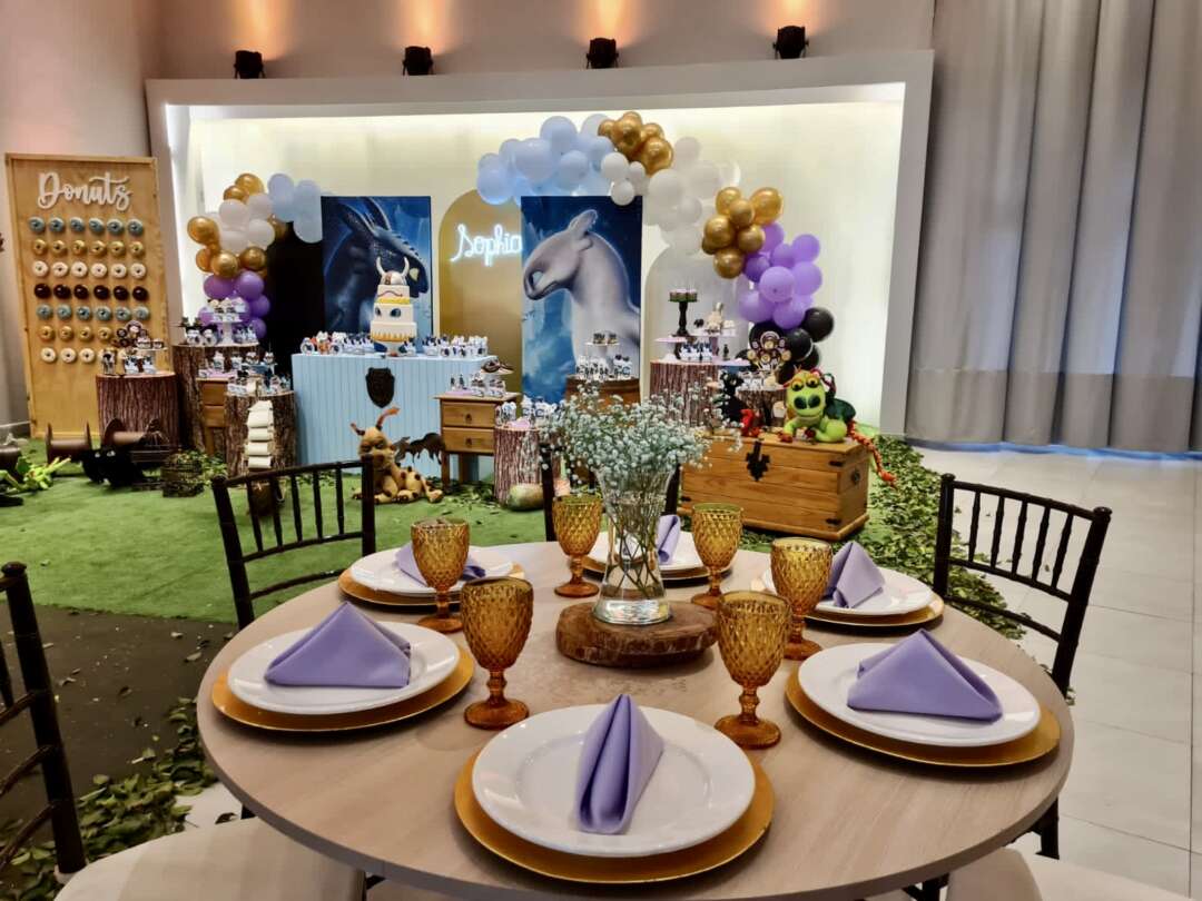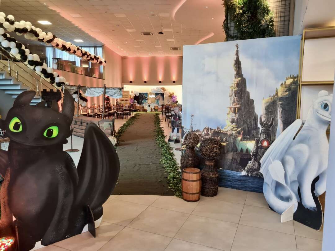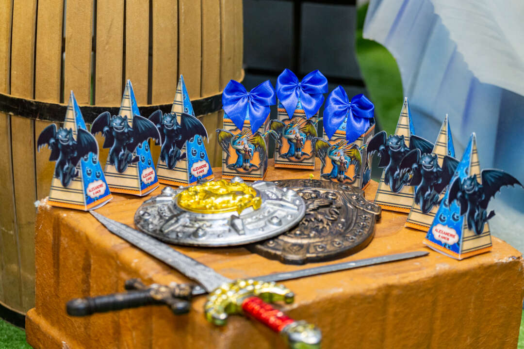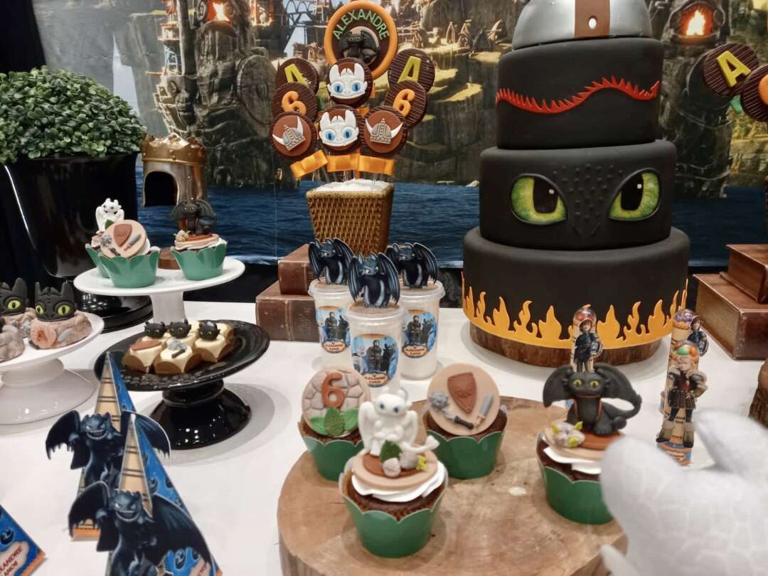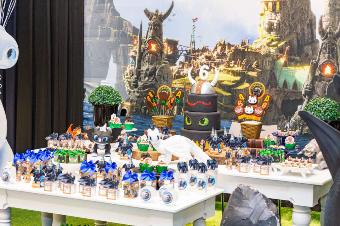 Decoração Personalizada: Equipe de Party Designers e Event Planners Dreamland. Tema: Como Treinar seu Dragão. Varias montagens.