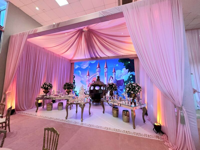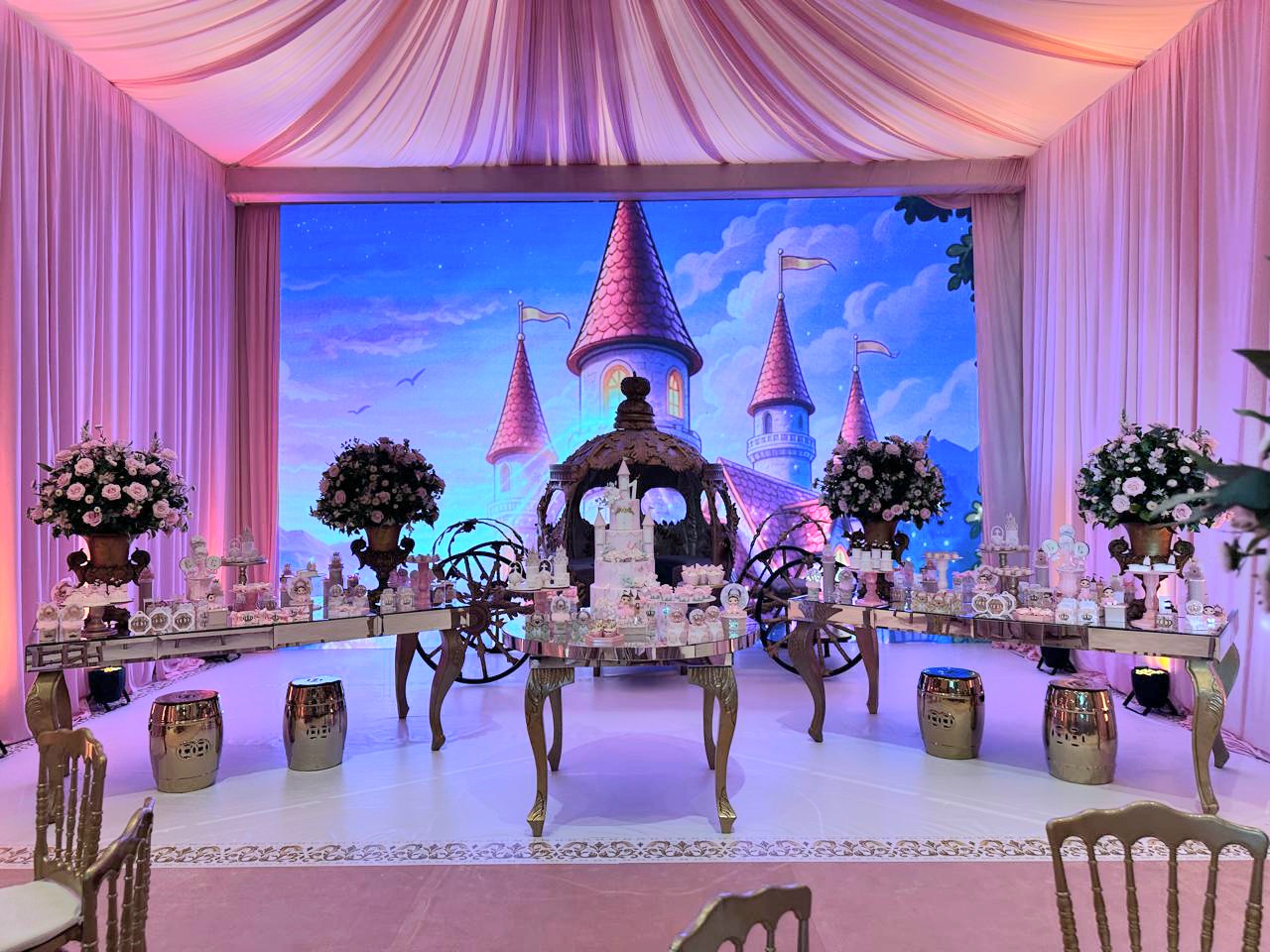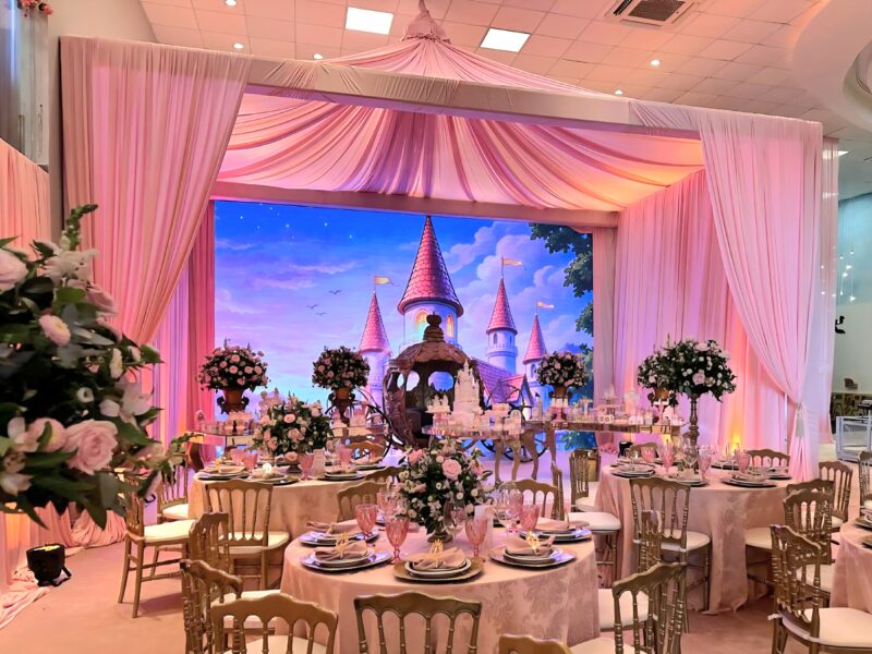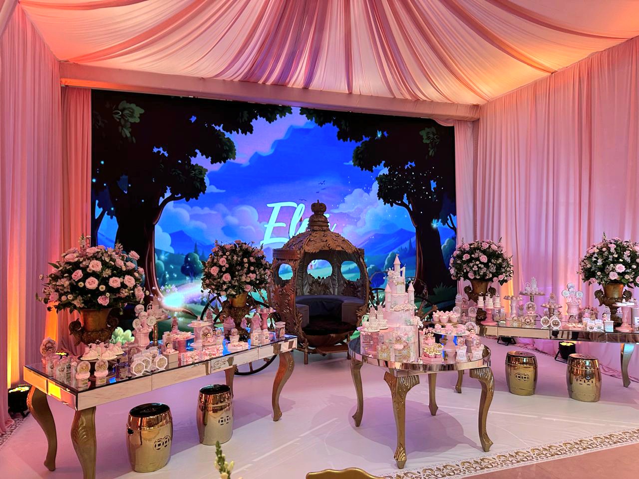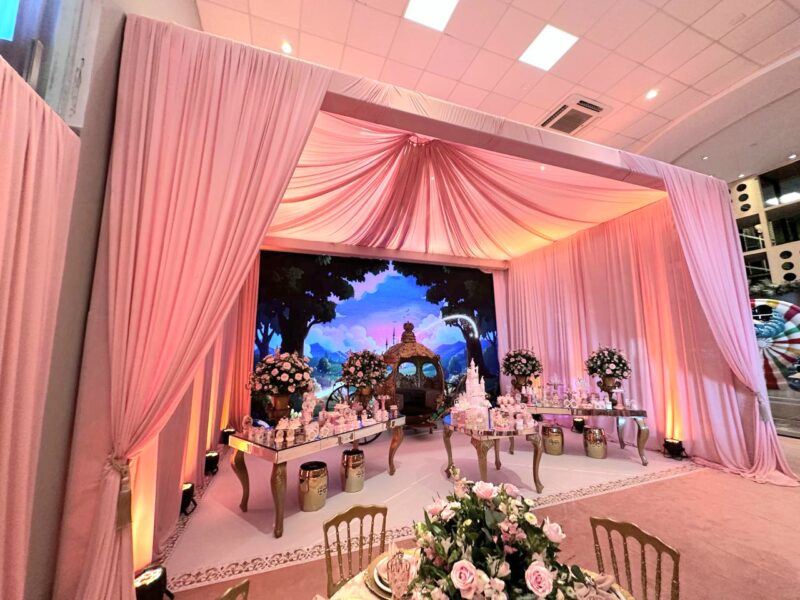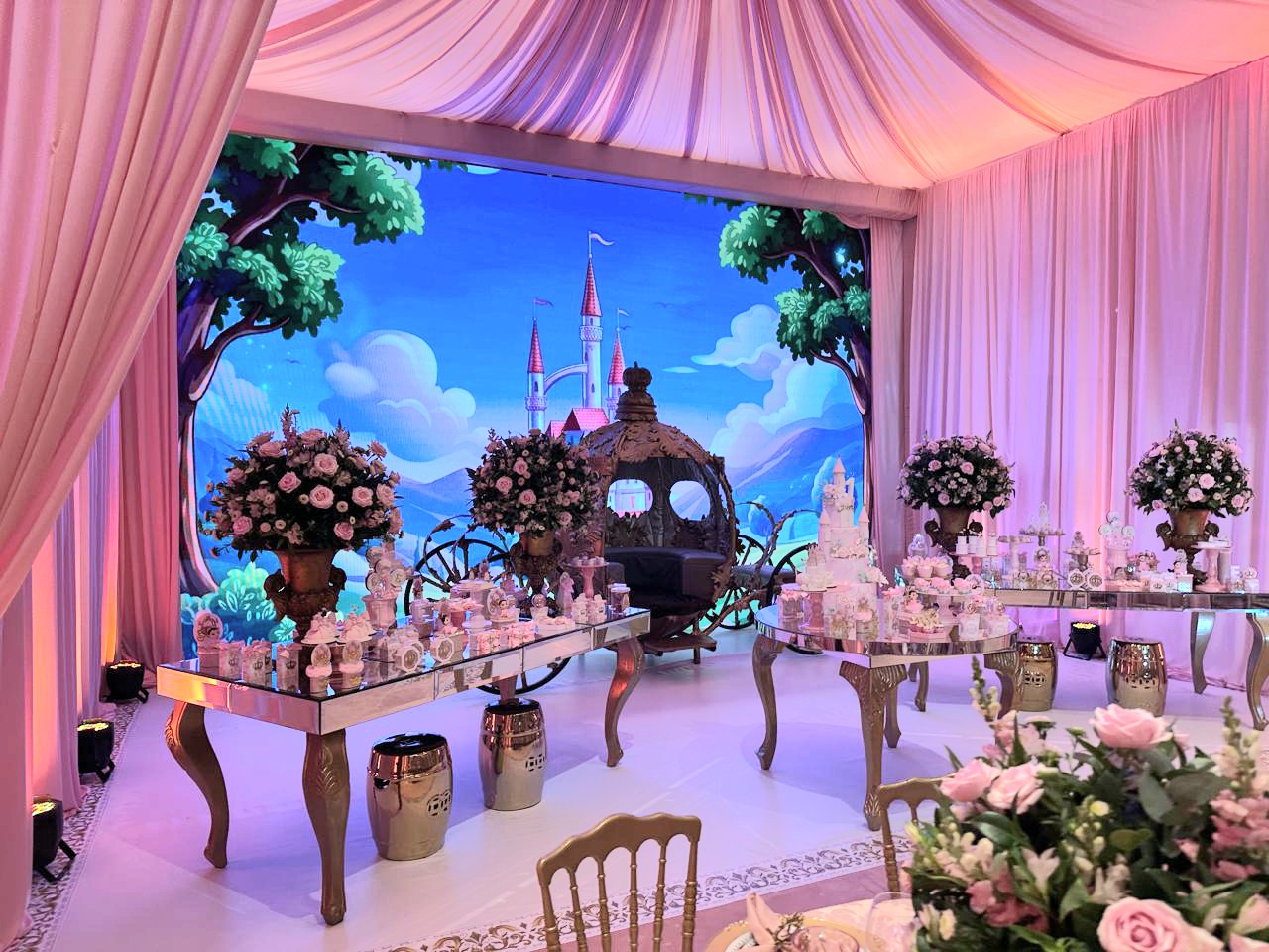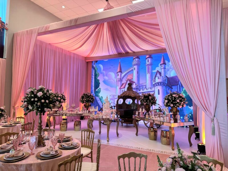 Decoração Personalizada: Equipe de Party Designers e Event Planners Dreamland. Tema: Conto de Fadas – Carruagem- Princesa – Realeza. Varias montagens.