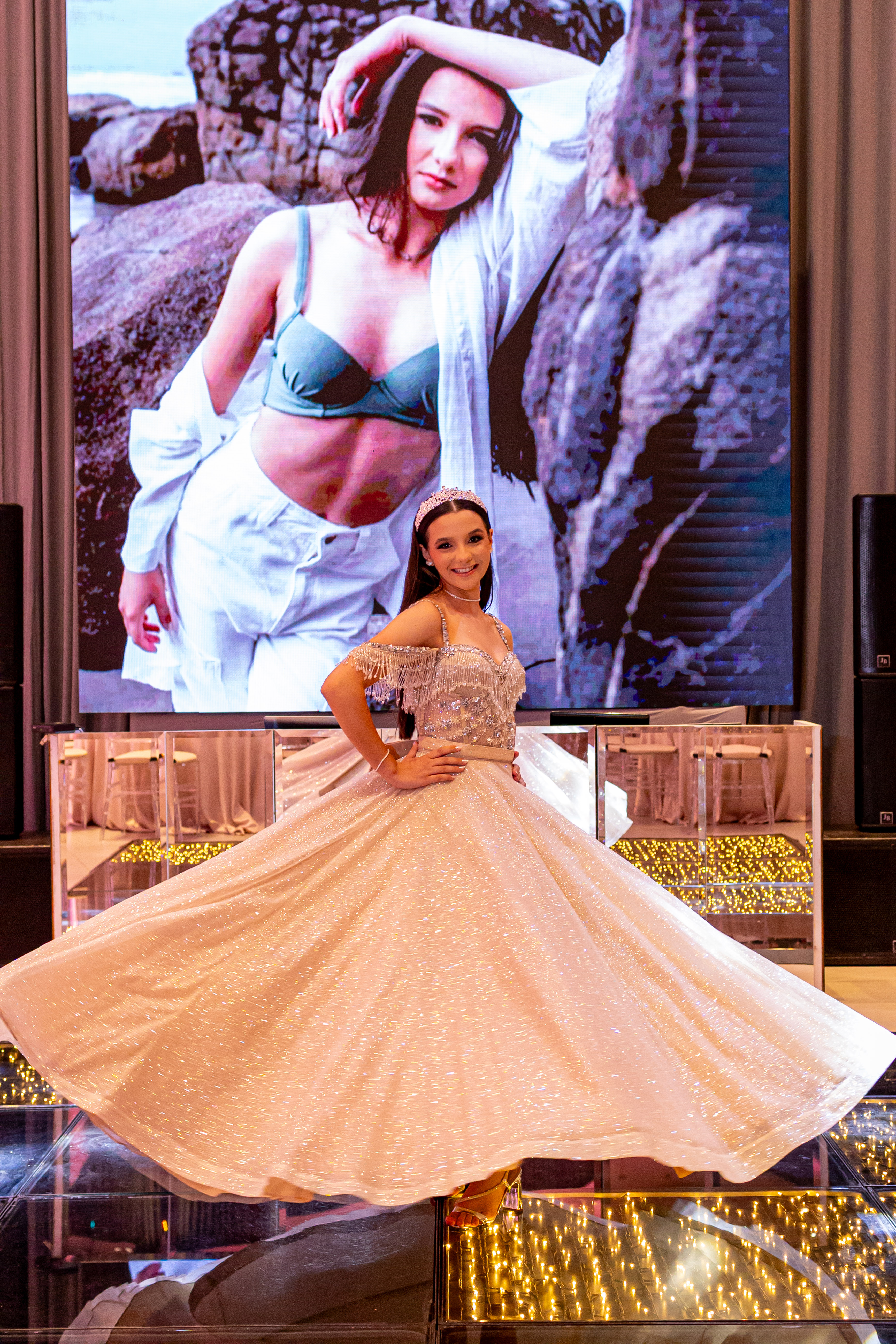 A debutante Mavi Tanner protagonizou momentos inesquecíveis durante toda a celebração. O vestido elegante e a atmosfera cuidadosamente construída reforçaram o clima de glamour típico dos grandes bailes de debutante.