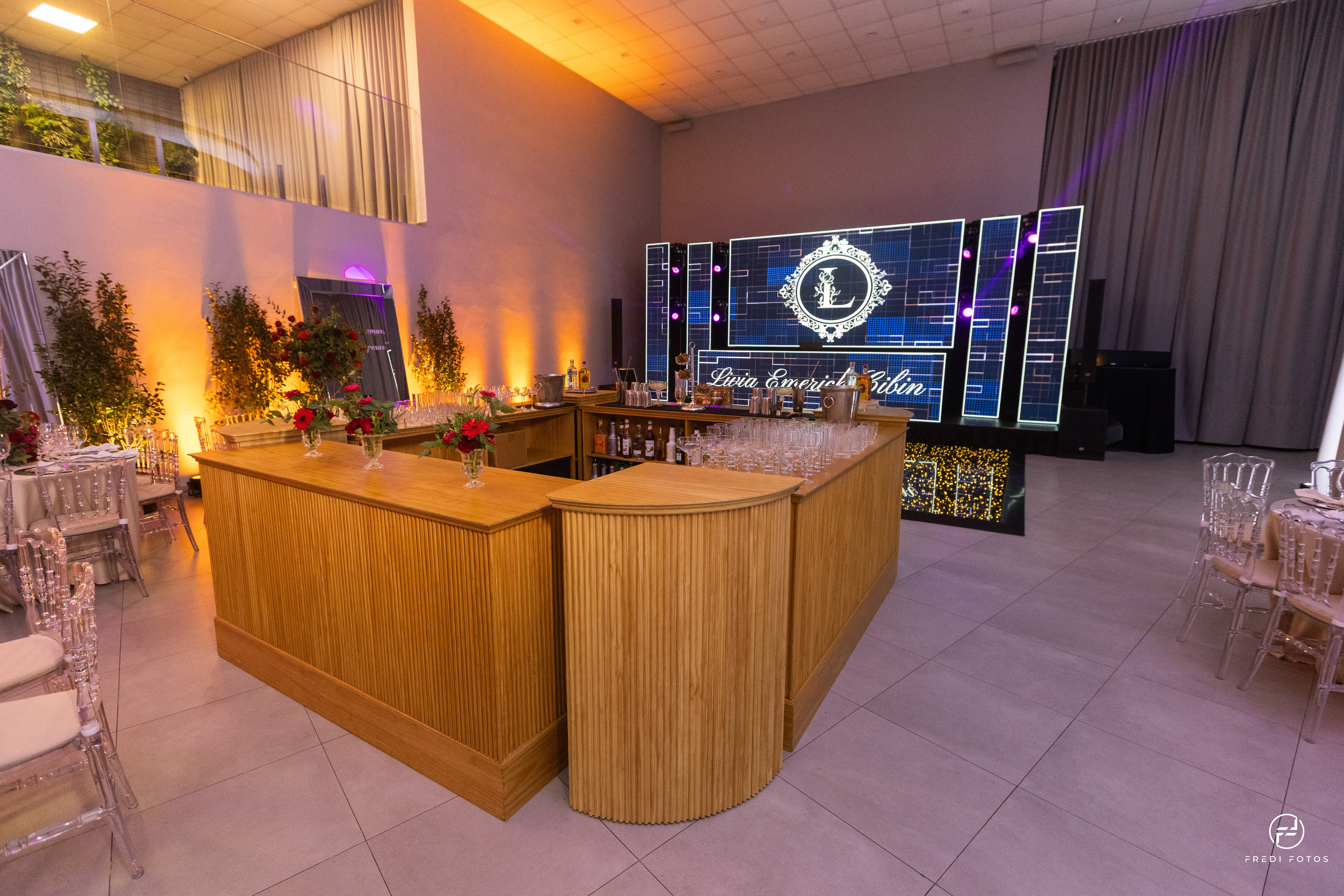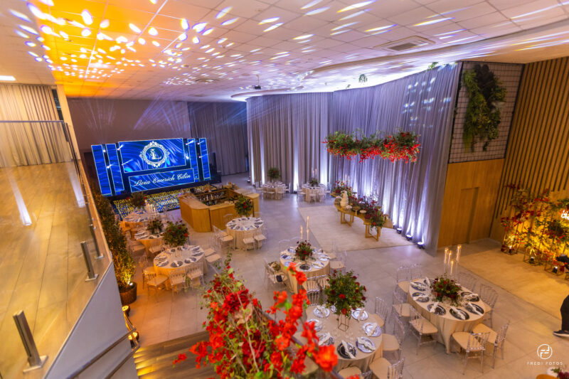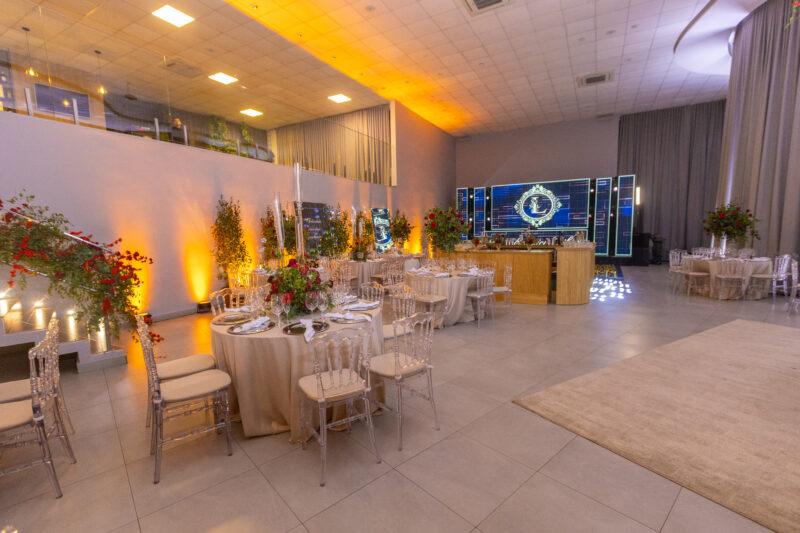 ✨ Cenário imponente – Um salão amplo, climatizado e versátil, que se transformou com a cenografia exclusiva criada para a ocasião.
