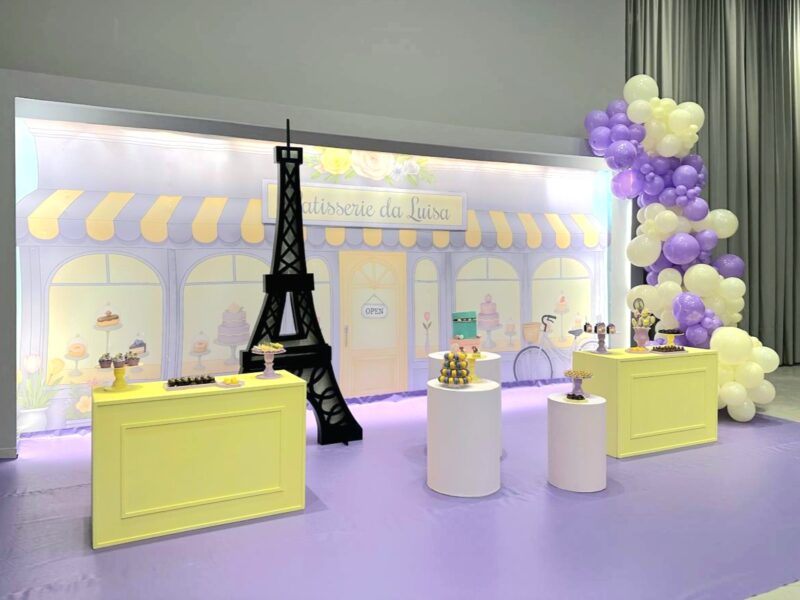 Decoração Personalizada: Equipe de Party Designers e Event Planners Dreamland. Tema: Patisserie em Paris. Varias montagens.