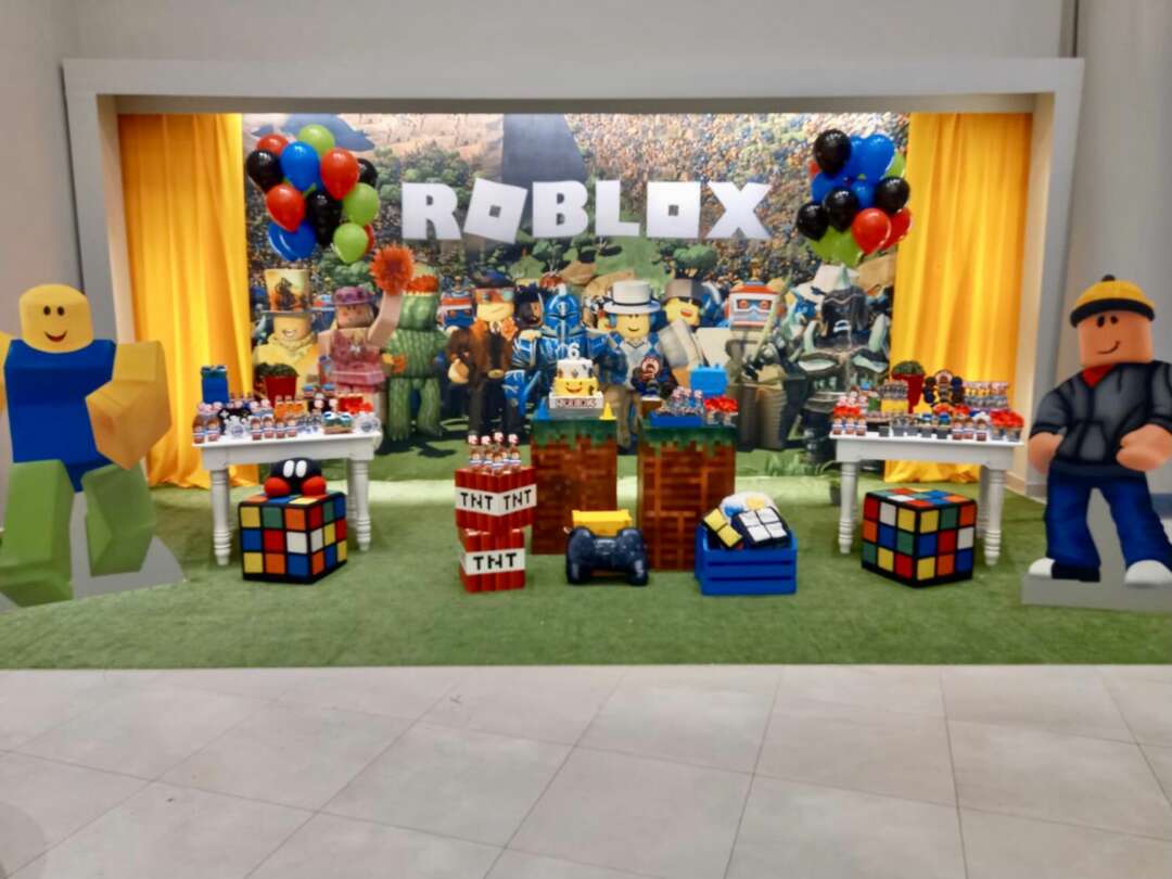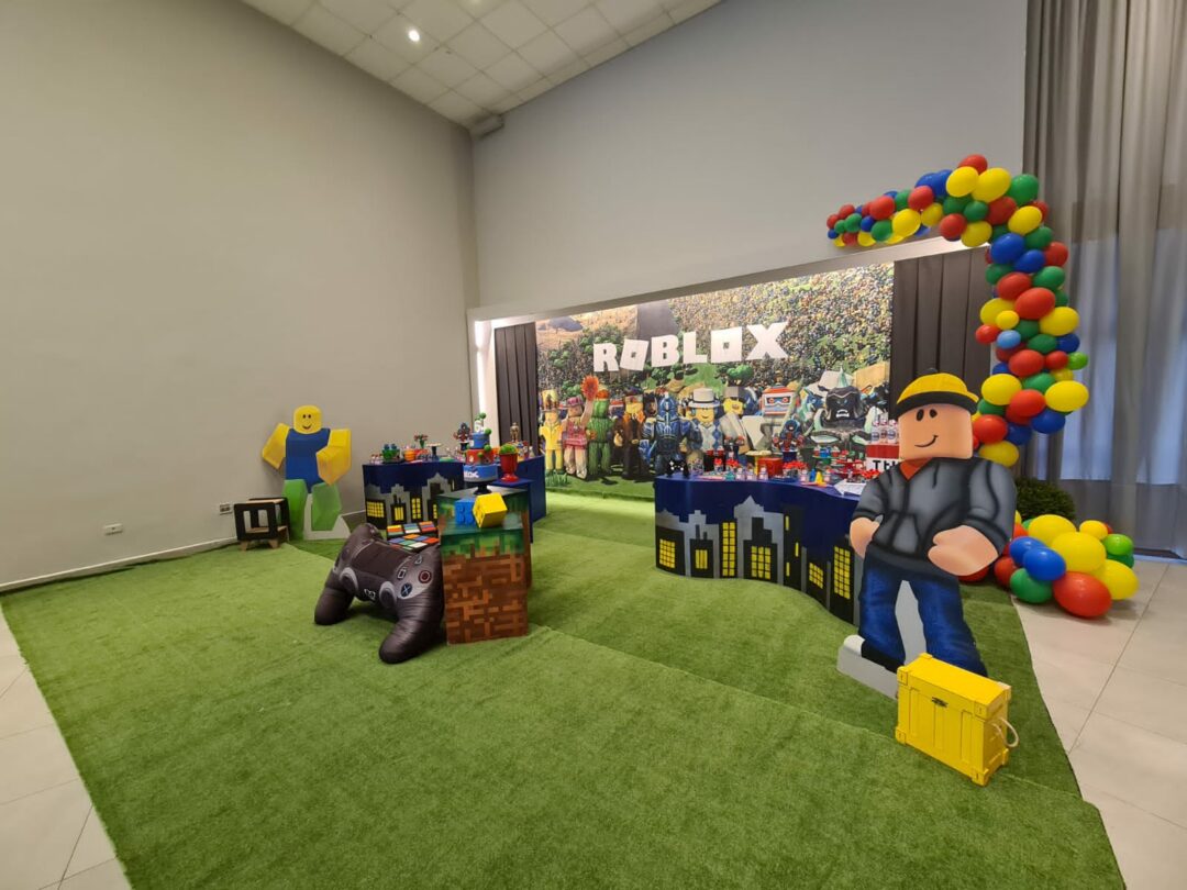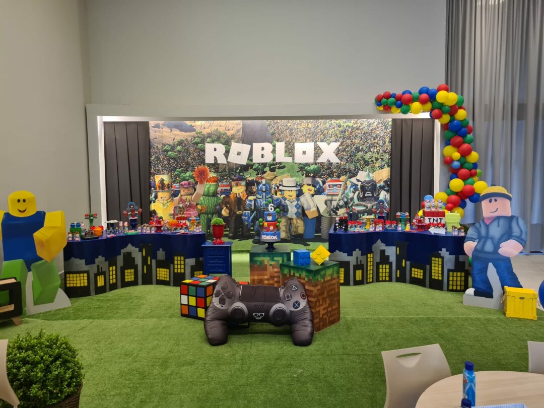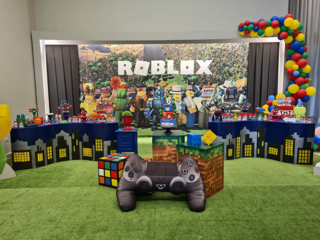 Decoração Personalizada: Equipe de Party Designers e Event Planners Dreamland. Tema: Roblox. Varias montagens.
