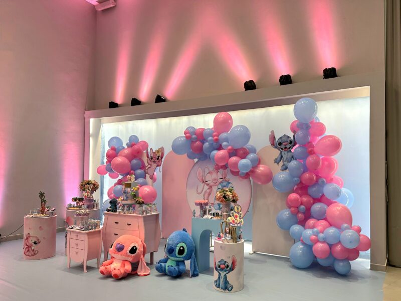 Decoração Personalizada: Equipe de Party Designers e Event Planners Dreamland. Tema: Stitch Lilo. Varias montagens.