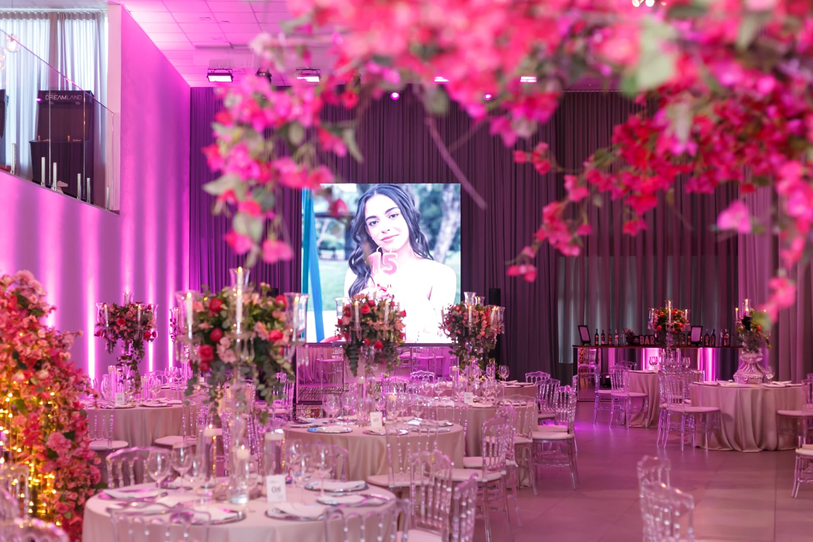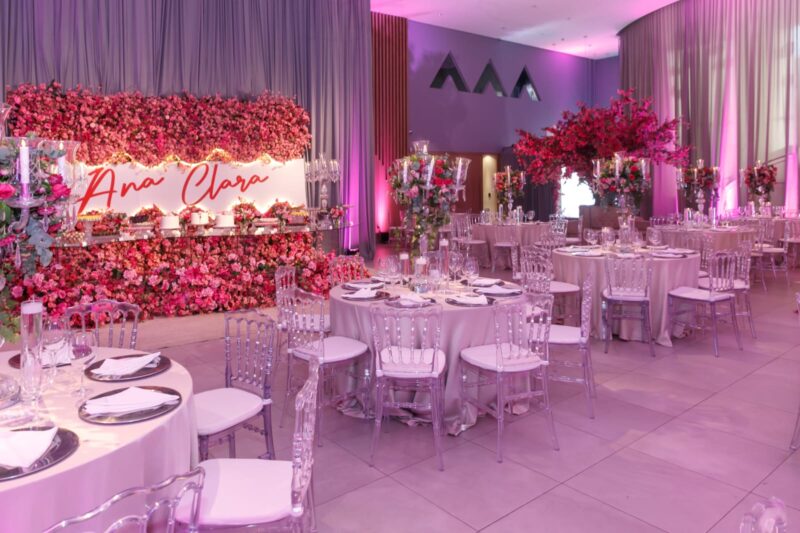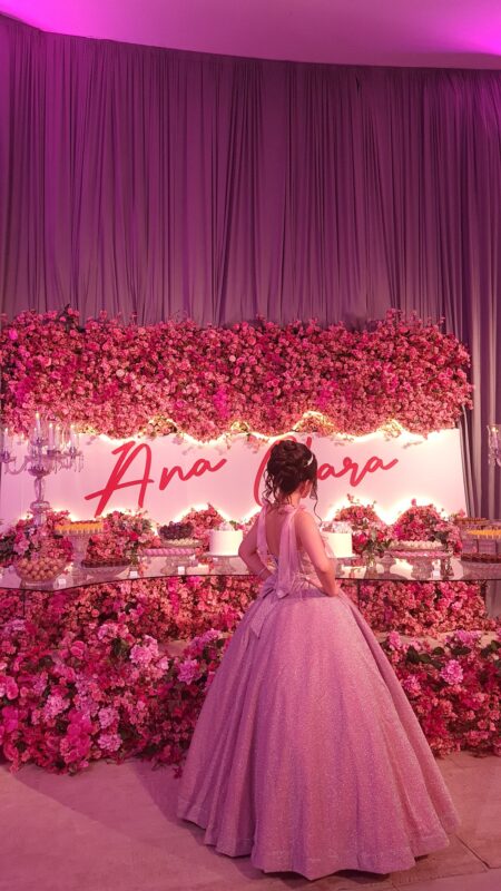 Foi exatamente assim na Festa de 15 Anos da Ana Clara, que escolheu o Dreamland para viver uma noite inspirada no deslumbrante tema Jardim das Cerejeiras — um cenário envolvente, delicado e absolutamente luxuoso.