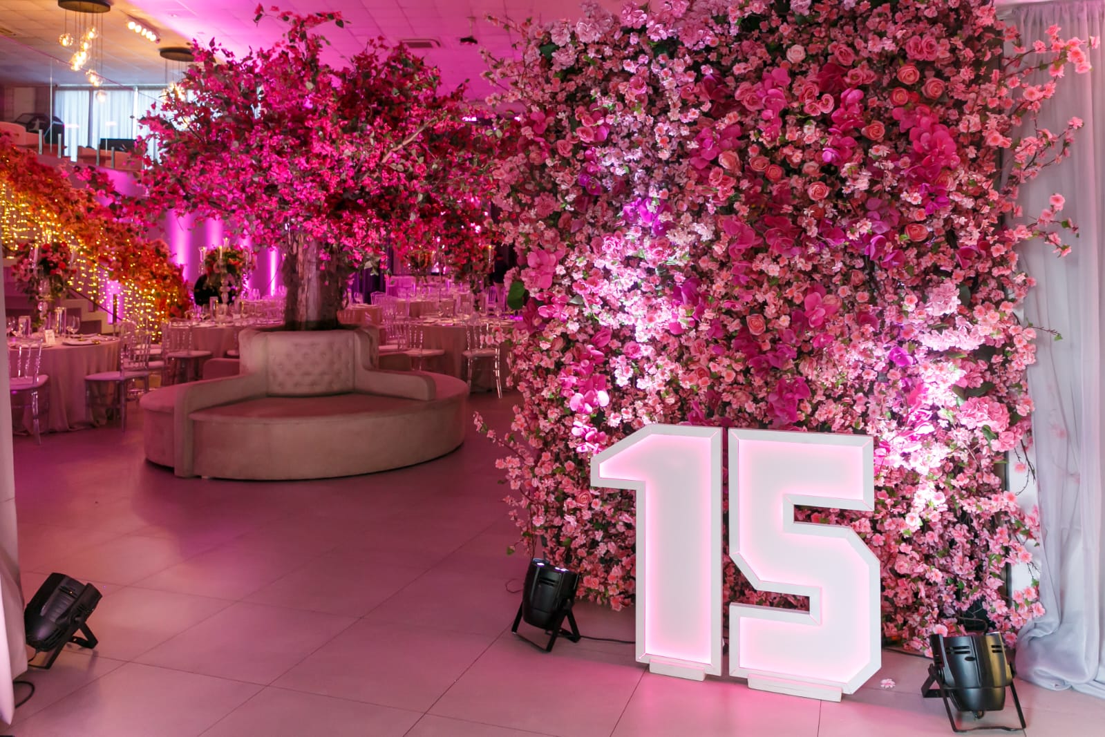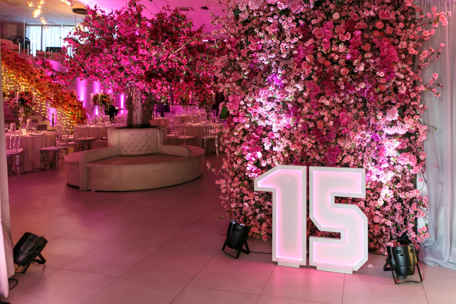 Festa de 15 Anos da Ana Clara: Um Encantador Jardim das Cerejeiras no Espaço Dreamland